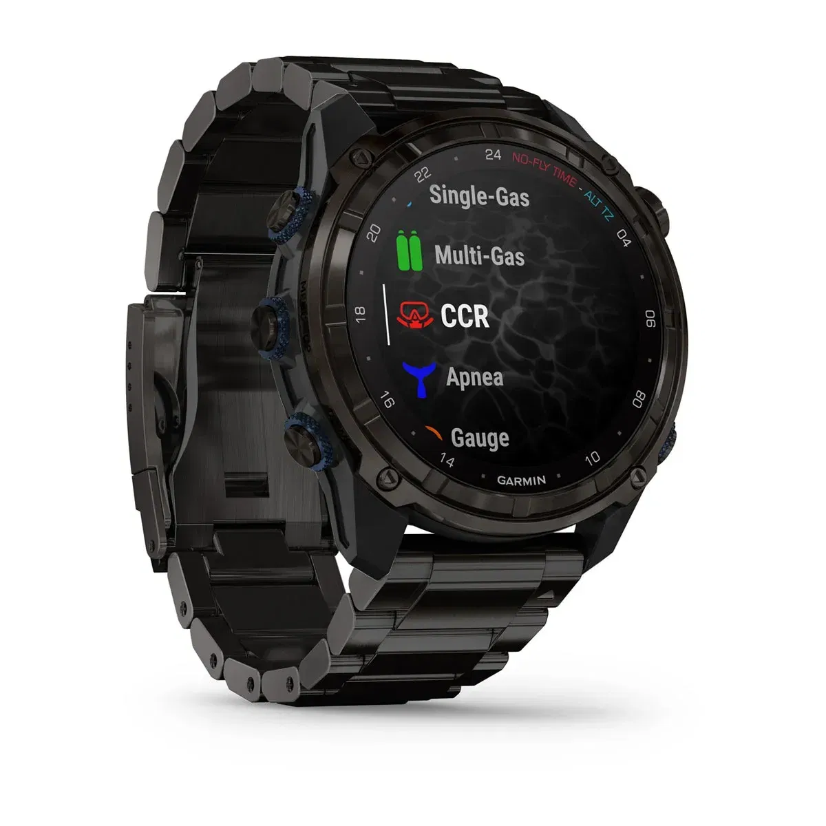 Úrið er með 1,4″ AMOLED snertiskjá, sapphire gleri, 200m vatnsheldni, tökkum og köfunareiginleikum.