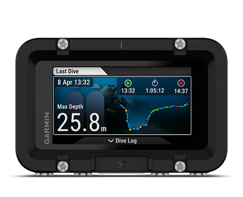 Geymir gögn um kafanir, búnað, glósur og fleira sem þú getur skoðað og deilt í með Garmin Dive appinu.