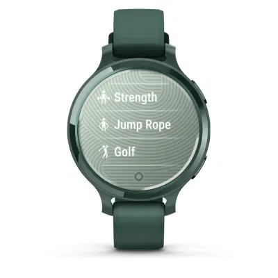 Lily 2 Active telur skref, mælir kaloríubrennsl, æfingamínútur og fleira¹. Innbygð æfingaforrit fyrir cardio, yoga, dans, lyftingar og fleira.
