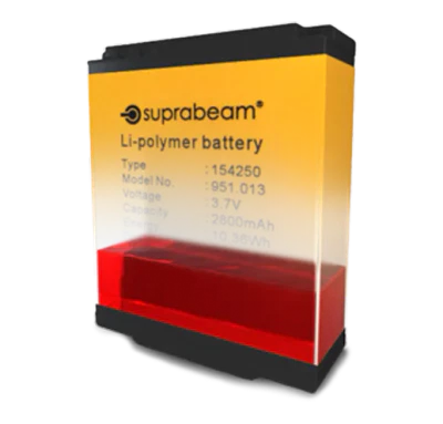 Suprabeam V3pro höfuðljósinu fylgir endurhlaðanleg Li-Po rafhlaða með USB-C tengi og USB-C kapall til að hlaða. Þú einfaldlega stingur rafhlöðunni í samband til að hlaða.