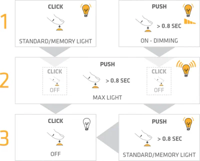 | Luminous Flux: | Max 1000 LM / Standard 180 LM / Dimming 300-6 LM |