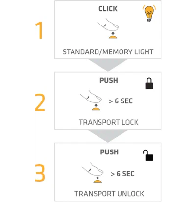 Lás = Læsir höfuðljósinu til þess að það kvikni ekki á því í flutningi