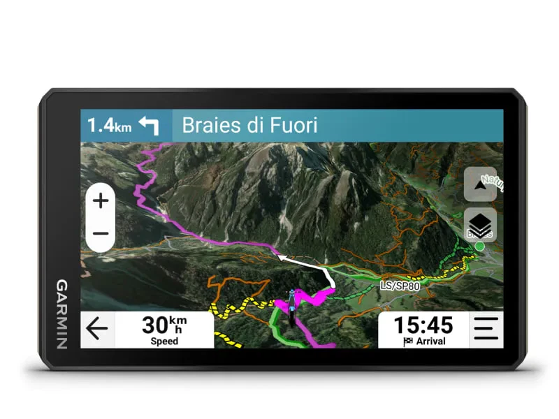 Tread 2 er með innbyggðum götukortum og bíður upp á vegaleiðsögn með tilheyrandi viðvörunum fyrir hraðatakmarkanir og skarpar beygjur.