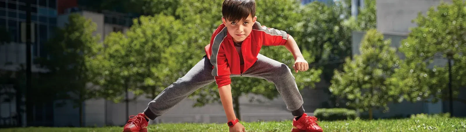Börnin geta lært um mismunandi æfingar til að gera og úrið hvetur til hreyfingar.